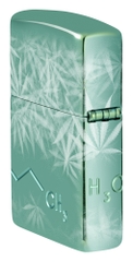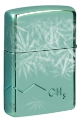 Hộp Quẹt Zippo 46313 Cannabis Compound Design Multicut Photo Image 360 Armor High Polish Greenlà dòng bật lửa vỏ dày đồng thau mạ Chrome xanh tắc kè, xanh biến màu, kết hợp 2 công nghệ khắc sâu 360 độ để khắc lên 4 mặt Zippo công thức hóa học THC và photo 360 độ hình cỏ 7 lá.