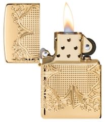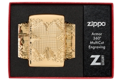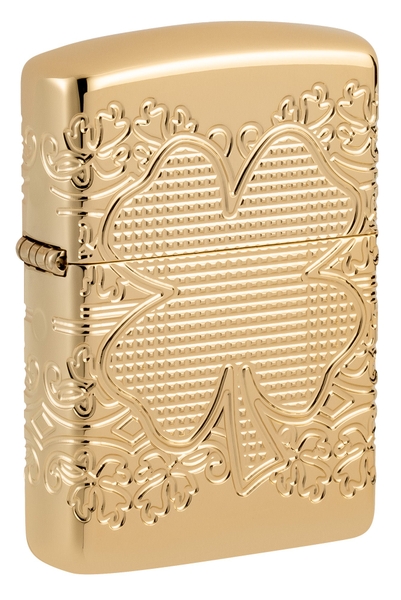 Hộp Quẹt Zippo 46301 Lucky Clover Design Multicut Armor High Polish Gold Plate