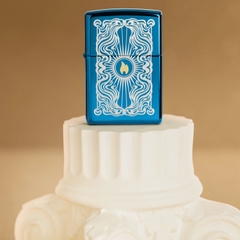 Hộp Quẹt Zippo 46424 Fancy Flame Design High Polish Blue