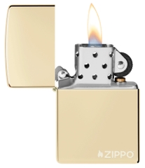 - Vỏ Zippo: Dòng vỏ đồng thau tiêu chuẩn có đầu tròn, mộc đáy lõm. Bản lề 5 chấu.