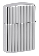 - Vỏ Zippo: Dòng vỏ đồng thau dày hơn 1.5 dòng tiêu chuẩn, đầu tròn, mộc đáy lồi. Bản lề 5 chấu.
