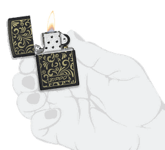 Hộp Quẹt Zippo 48152 là dòng bật lửa sơn tĩnh điện màu đen sử dụng công nghệ khắc Laser hoa văn lên mặt trước. Hộp giấy Zippo đi kèm có thể sử dụng như hộp quà tặng. Khi sử dụng với xăng Zippo chính hãng bật lửa sẽ phát huy tối đa hiệu quả cháy, chống gió và giữ xăng lâu hơn (1 ngày bật 20 lần, 1 lần 3 giây, điều kiện buồng đốt sạch, tim trắng, 7 ngày sẽ cạn xăng).