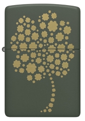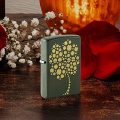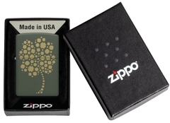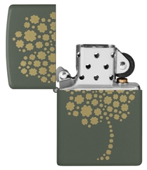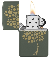 Hộp Quẹt Zippo 48501 là dòng sơn tĩnh điện màu xanh quân đội được khắc laser mặt trước hình cỏ 4 lá, biểu tượng may mắn của người Ireland. Hộp giấy Zippo đi kèm có thể sử dụng như hộp quà tặng. Khi sử dụng với xăng Zippo chính hãng bật lửa sẽ phát huy tối đa hiệu quả cháy, chống gió và giữ xăng lâu hơn (1 ngày bật 20 lần, 1 lần 3 giây, điều kiện buồng đốt sạch, tim trắng, 7 ngày sẽ cạn xăng).