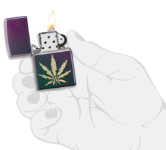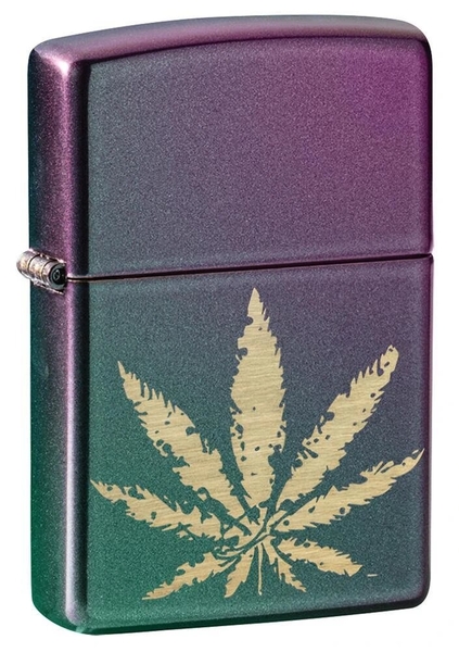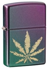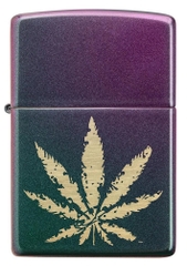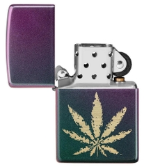 Zippo Iridescent Marijuana Leaf 49185 dòng bật lửa Zippo vỏ đồng thau sơn tĩnh điện màu cầu vồng, được hãng Zippo khắc laser hình lá cần lên mặt trước. Sự kết hợp của ánh satin, màu ngọc, lam, tím, dạ quang tạo hiệu ứng thay đổi màu sắc cho chiếc Zippo khi chúng ta nhìn từ các góc độ khác nhau. Hộp giấy Zippo đi kèm có thể sử dụng như hộp quà tặng.