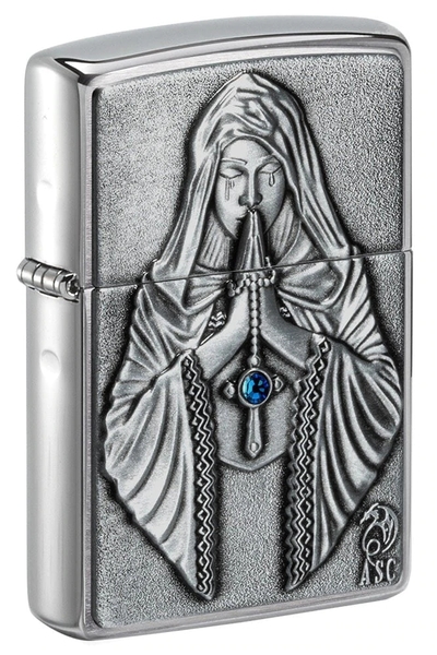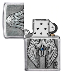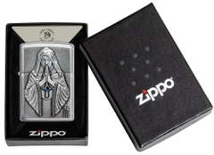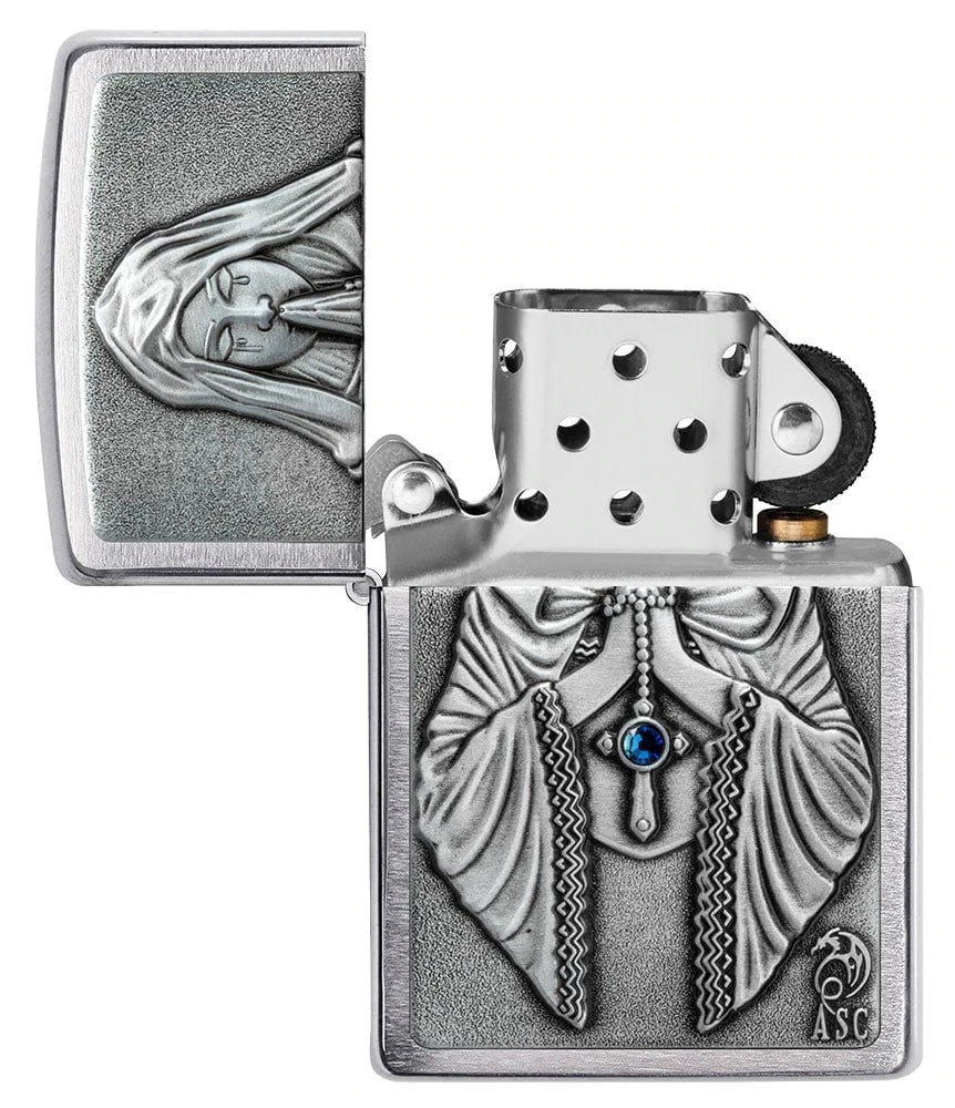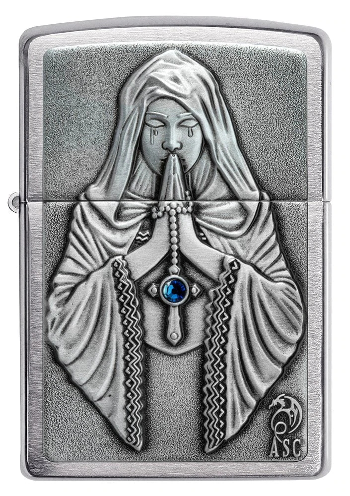 Zippo Anne Stokes 49756 là dòng bật lửa vỏ đồng thau mạ Chrome xước vân ngang 2 mặt bóng cạnh được hãng Zippo ốp nổi lên mặt trước hình Đức Mẹ Maria khóc lúc cầu nguyện và một viên ngọc xanh lam được đính trên Thánh Giá của Mẹ. Hộp giấy Zippo đi kèm có thể sử dụng như hộp quà tặng. Khi sử dụng với xăng Zippo chính hãng bật lửa sẽ phát huy tối đa hiệu quả cháy, chống gió và giữ xăng lâu hơn (1 ngày bật 20 lần, 1 lần 3 giây, điều kiện buồng đốt sạch, tim trắng, 7 ngày sẽ cạn xăng).