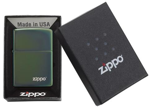 Zippo Chameleon with Zippo Logo dòng vỏ đồng thau mạ Chrome xanh tắc kè, xanh biến màu có khắc laser logo Zippo ở mặt trước. Hộp giấy Zippo đi kèm có thể sử dụng như hộp quà tặng. Khi sử dụng với xăng Zippo chính hãng bật lửa sẽ phát huy tối đa hiệu quả cháy, chống gió và giữ xăng lâu hơn (1 ngày bật 20 lần, 1 lần 3 giây, điều kiện buồng đốt sạch, tim trắng, 7 ngày sẽ cạn xăng).
