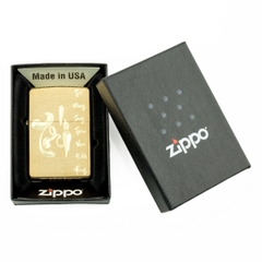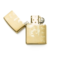 - Vỏ Zippo: Dòng vỏ đồng vàng nguyên khối tiêu chuẩn có đầu tròn, mộc đáy lồi. Bản lề 5 chấu.