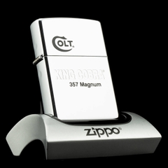 Zippo Colt King Cobra 357 Magnum XIII 1997. Khi sử dụng với xăng Zippo chính hãng bật lửa sẽ phát huy tối đa hiệu quả cháy, chống gió và giữ xăng lâu hơn (1 ngày bật 20 lần, 1 lần 3 giây, điều kiện buồng đốt sạch, tim trắng, 7 ngày sẽ cạn xăng).