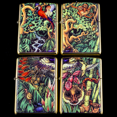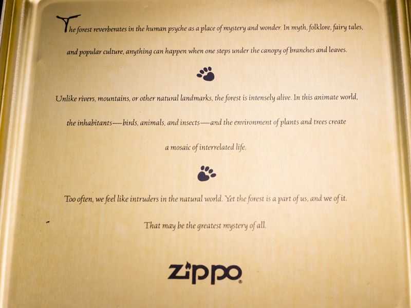 Bộ sưu tập Zippo COTY (Collecitible Of The Year - Bộ Sưu Tập Của Năm) Mystery Of The Forest sản xuất năm 1995 bằng chất liệu đồng thau mang chủ đề “Bí ẩn của rừng” gồm 1 bản chính (4 chiếc) và 1 bản phụ: