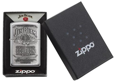 Zippo Jim Beam® 250JB.928 là dòng vỏ đồng thau mạ Chrome bóng được ốp một miếng ốp nổi logo Jim Beam® (thương hiệu Bourbon Whiskey số 1 trên thế giới). Hộp giấy Zippo đi kèm có thể sử dụng như hộp quà tặng. Khi sử dụng với xăng Zippo chính hãng bật lửa sẽ phát huy tối đa hiệu quả cháy, chống gió và giữ xăng lâu hơn.