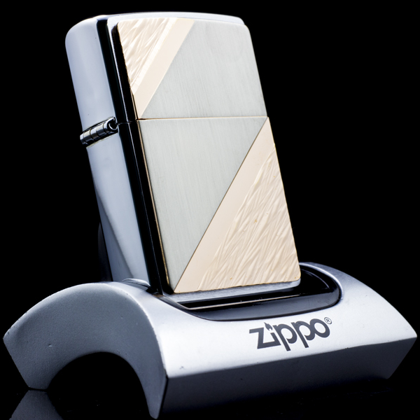 - Vỏ Zippo: Dòng vỏ đồng thau tiêu chuẩn có đầu tròn, mộc đáy lõm. Bản lề 5 chấu.
