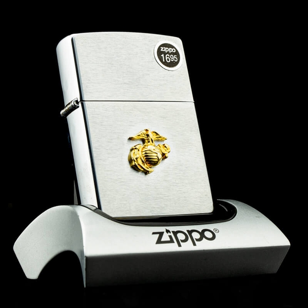 Zippo U.S Marine Emblem Brushed Chrome Huy Hiệu Thủy Quân Lục Chiến Mỹ Ốp Nổi 1996